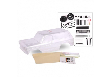 Traxxas Body, Ford Bronco (1979), complete (Clear, trimmed, requires painting) (includes grille, side mirrors, door handles, windshield wipers, spare Tyre mount, decals, window masks) (requires #8072 inner fenders) TRX8010P