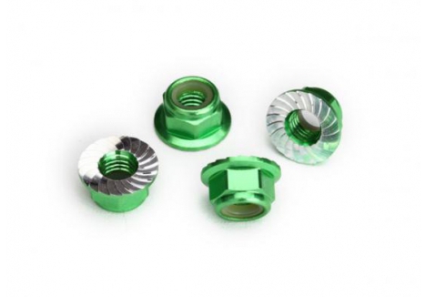 Traxxas Nuts, aluminium, flanged, serrated (4mm) (Green-anodised) (4 pcs) TRX1747G