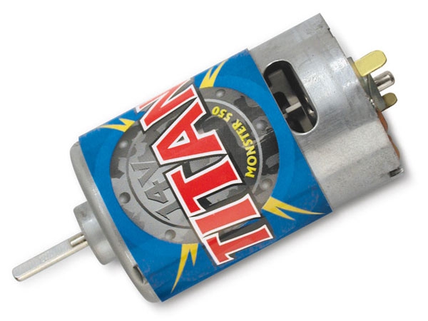 The Titan 550 is a 21-turn fan-cooled 550 size motor capable of handling 14.4 volts. This powerful motor has a 30% longer armature than a standard 540 size motor for extreme monster torque.