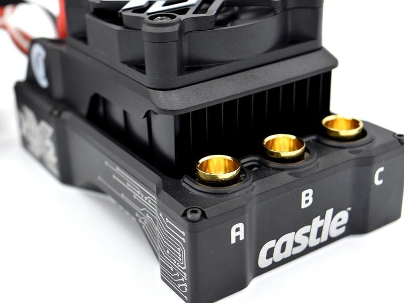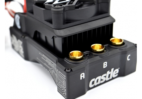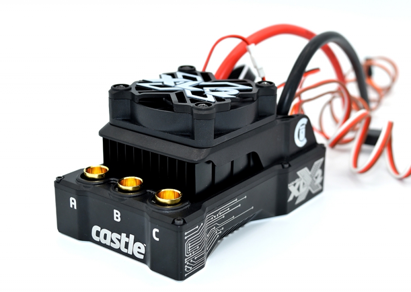 CRYO-DRIVE, Castle's proprietary breakthrough technology integrates unique software and dedicated hardware to reduce heat and dramatically increase performance. Thousands of times per second, the XLX2 software minimizes the amount of time the electrical components spend generating heat. These software advancements work in parallel with an open housing design which enables increased directional airflow to cool critical components. With the combination of a new 50mm fan and forged elliptical fin heatsink, the XLX2 maximizes airflow throughout the system, taking thermal performance to a whole new level. The results are more power handling, cooler ESC temperatures and longer runtimes and for ultra-high performance.