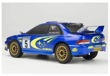 - Body: Polycarbonate – factory painted in Subaru WRC blue with licensed trim and high-downforce wing