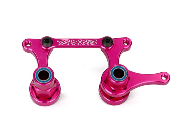 Enhance steering precision, strength, and looks with Traxxas aluminium steering bellcrank assemblies. Machined from tough 6061-T6 aluminium, these bellcranks add colourful style with a brilliant anodised finish and laser-etched Traxxas logo. 5x8 mm ball bearings on the steering posts provide silky-smooth turning action with reduced friction and longer life. The pre-assembled units are easy to install with detailed instructions included in the package.