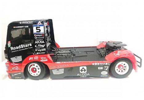 This model recreates the Mercedes Actros as raced by the Tankpool24 team in the 2019 ETRC (European Truck Racing Championship). This specific recreation depicts the truck that carried the team to 4th place on the year, with veteran Hungarian driver Norbert Kiss 6th overall in the drivers’ standings. The realistic body is a 3-piece set made from lightweight and durable polycarbonate, with separately molded plastic side mirrors, coupler and rear bumper parts. The TT-01 Type-E chassis is a proven performer, and this chassis is fitted with dedicated semi-truck wheels and tires for the model.
