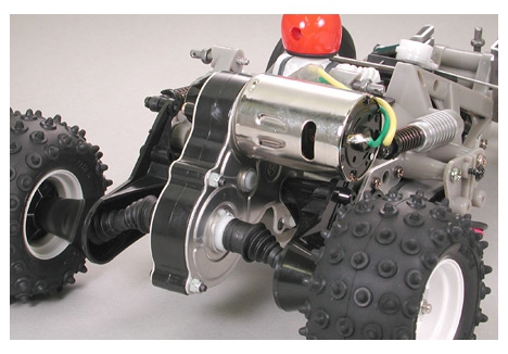 The Tamiya TAM58354 electric buggy with 4-wheel independent suspension and 3-step gear ratio transmission comes equipped with a factory-installed RS-540 motor, a proven power unit in Tamiya’s electric racing lineup. This motor delivers consistent torque and acceleration, making it ideal for navigating rough terrain, executing jumps, and maintaining speed through corners. Its compatibility with the sealed gearbox ensures efficient power transfer while protecting internal components from dust and grit. Whether racing across dirt tracks or tackling backyard trails, the RS-540 motor provides the thrust needed for competitive off-road driving.