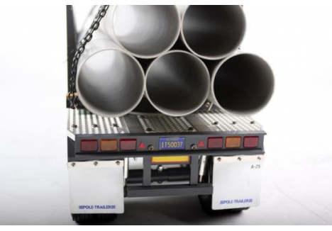The Pole-Trailer is able to carry pipes of various length due to its collapsible pole. The trailer also features an aluminium chassis and 4 highly detailed wheels. 5 plastic pipes of 55mm in diameter and 75cm in length are included.