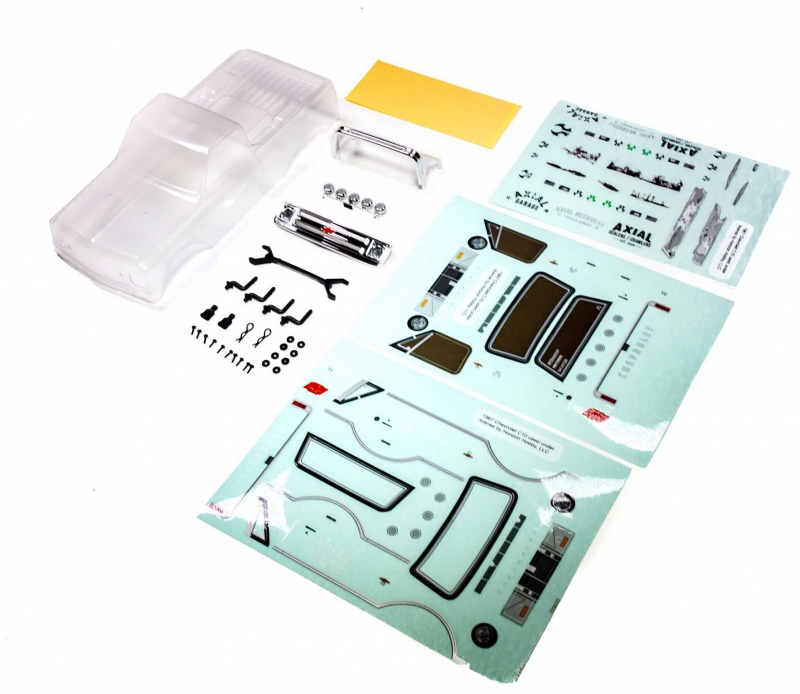 - One 1967 Chevy C10 polycarbonate bodyshell, designed for SCX24 scale accuracy