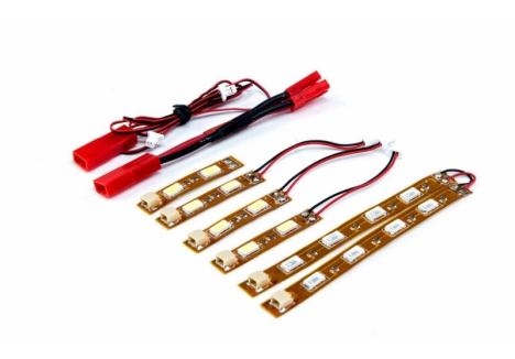 The brilliant LED lighting system features frame and tail-fin lights that operate off the flight pack. The main blades utilize individual 1S ultramicro Li-Po batteries you can easily remove for charging with a 1S charger.