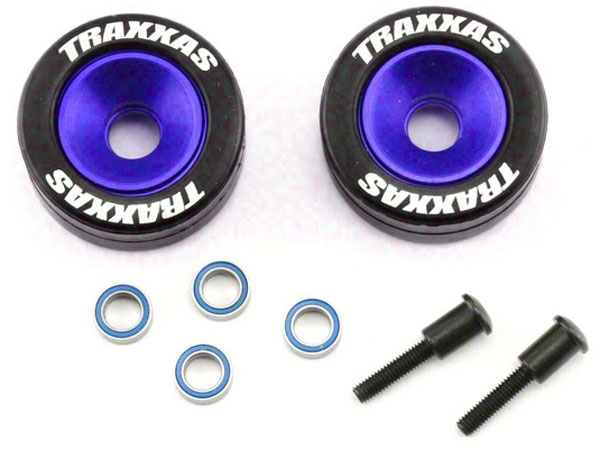 - Product Type: Traxxas TRX5186A aluminium wheelie bar wheels, Traxxas TRX5186A machined RC wheels with ball bearings, Traxxas TRX5186A anodised aluminium wheels for wheelies, Traxxas soft compound tyres for stable wheelies TRX5186A, Traxxas 6061-T6 aluminium wheels with sealed bearings, Traxxas blue anodised wheelie bar wheels with axle screws