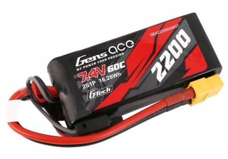 Gens ace lipo 2200mAh 2S1P 60C lipo battery pack has Remarkable stacking technology which enables single-cell capacities of 2200mAh. With High discharge performance and high energy density, Gens ace Gens ace G-Tech 2200mAh 7.4V 50C 2S1P TRX Lipo Battery is suitable for all Traxxas 1:16 VXL Models: such as Revo, Fiesta, Boss 302 Mustang.