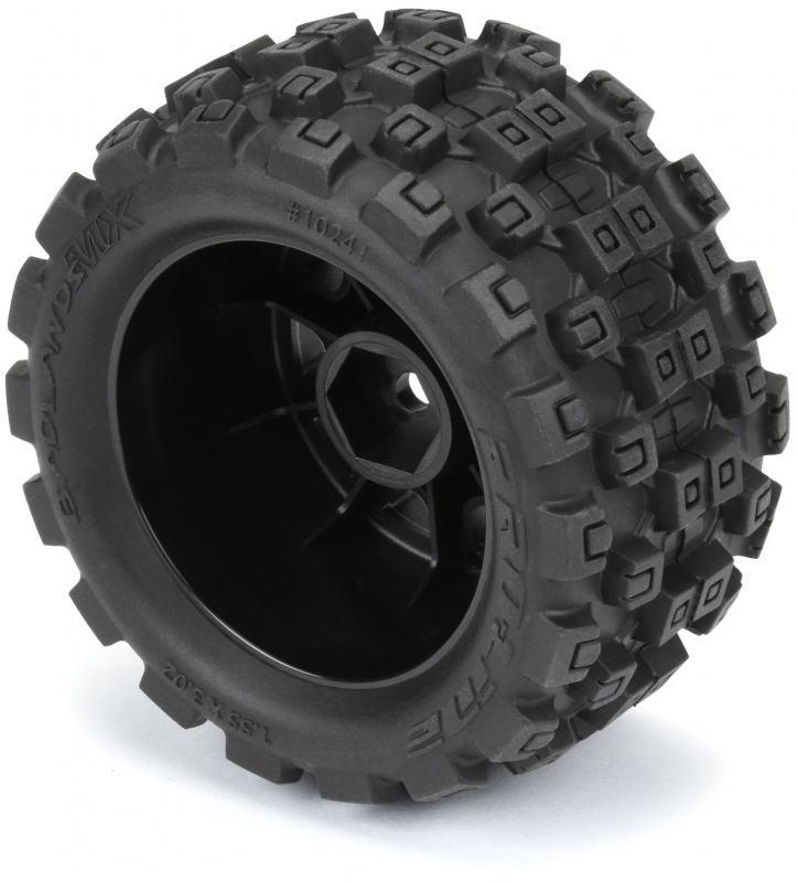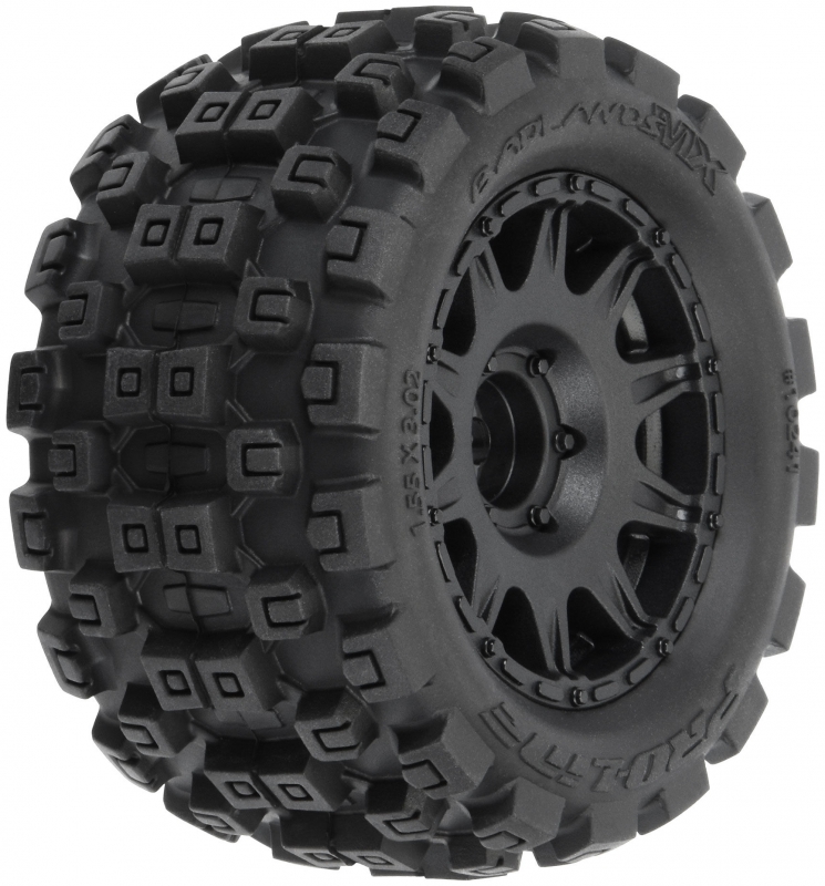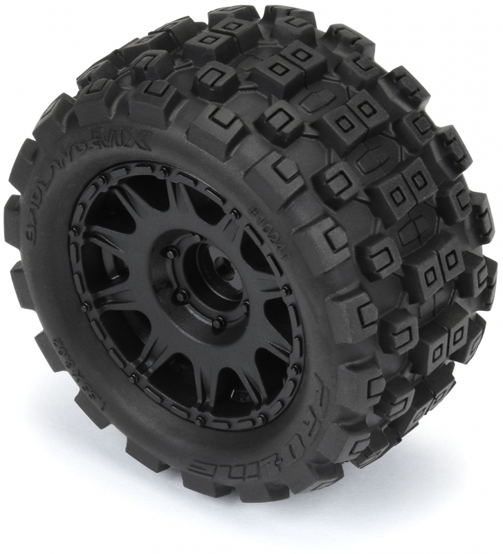 This is a set of pre-mounted Badlands MX Tires on Raid Wheels for the Granite™ GROM. Pro-Line’s most popular Monster Truck Bashing tire is now available in mini size for the 1/18 ARRMA® Granite™ GROM! The Badlands MX Line of tires are known for having Motocross-inspired tread with a big, bold, knobby tread that matches modern MX tire design.