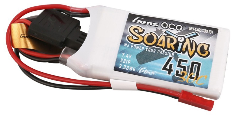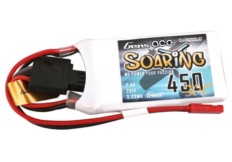 Gens ace Soaring 450mAh 7.4V 30C 2S1P Lipo Battery is a great fit for all smaller Heli´s and Planes like the Blade 130X and Indoor Foam Planes, he delivers consistent Power to all these kind of models and is a long time hot seller in the Gens ace Line up.
