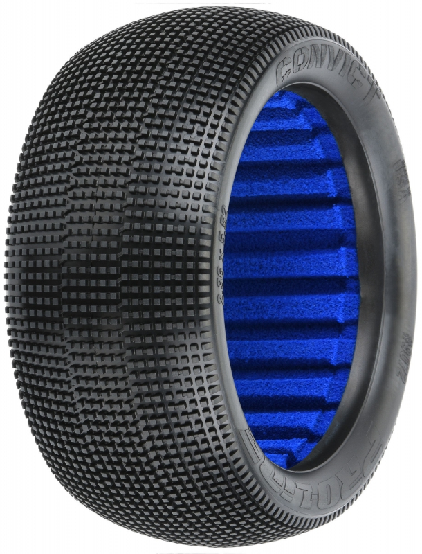 The Fugitive was developed to be the longest-lasting race tire ever produced and it proved that by winning the World Championship in the harshest condition while still having tread leftover. But for most racetracks and in most conditions, you just don't need that much tread. Enter the Convict, a lightweight and more versatile version of the popular Fugitive! The Convict is made from Pro-Line's latest generation carcass shape for improved bump handling and features smaller and more spaced-out tread, so it has the speed for qualifying while still having the right amount of tread to last long main events. Strategically placed small connecting bars improve the stability of the tire tread, which is especially important when used in softer compounds. Don't get caught spinning your tires out in the dust, the Convict is your new go-to tire for both qualifying and mains! Get your own set today!