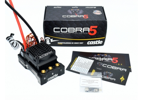 - Product Type: Castle P-CC010-0179-00 COBRA 5 8S ESC with 20A peak BEC, CRYO-DRIVE™, and SmartSense™, Castle P-CC010-0179-00 ESC for 1/5 and 1/7 scale RC vehicles with 33.6V max input and 50mm cooling fan, Castle P-CC010-0179-00 waterproof ESC with enhanced data logging and CNC aluminum case, Castle P-CC010-0179-00 with 32-bit processor, 8mm bullet connectors, and 300mm sensor wire, Castle ESC for 1/5 scale bashers and rock racers up to 8S LiPo and 150+ amp connectors