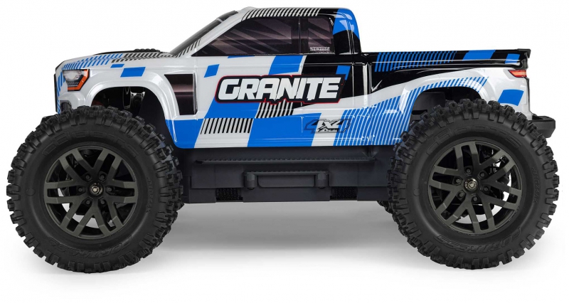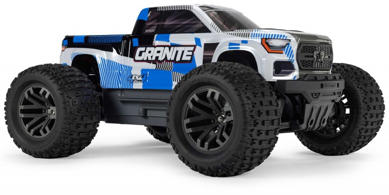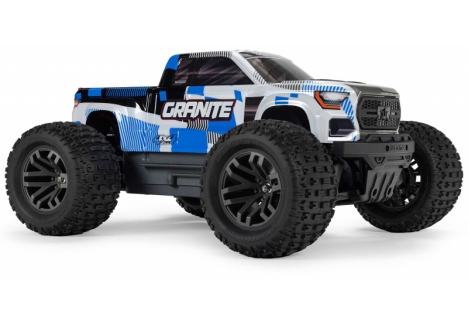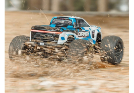 The ARRMA C-ARA4202V4T2 GRANITE MEGA 665 4X4 RTR with 14T brushed motor and 40A ESC is a blue monster truck engineered for drivers who want rugged performance, upgrade-ready design, and aggressive styling in one ready-to-run package. Built at 1/10 scale and equipped with a 4WD drivetrain, this brushed powerhouse delivers torque, traction, and terrain adaptability straight out of the box. Whether you're new to RC or looking for a durable platform to bash across dirt, gravel, or grass, the ARRMA C-ARA4202V4T2 offers a compelling mix of control, protection, and power. With waterproof electronics, a clipless body system, and a 3S brushless-ready transmission, this monster truck is built to grow with your skills and driving ambitions.