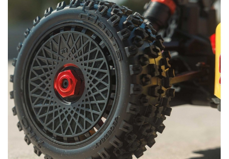 The TYPHON MEGA 665 with dBoots 2-HO tires and waterproof Spektrum electronics is equipped to grip and go. The multi-surface tread pattern on the dBoots 2-HO tires delivers traction across dirt, gravel, and short grass. Vent holes allow air and moisture to escape, improving grip and preventing buildup. The tires are mounted on tough nylon wheels with foam inserts that reduce vibration and enhance handling. Combined with the waterproof Spektrum electronics, these components ensure the ARRMA C-ARA4206V4T2 is ready to bash in any condition with confidence and control.