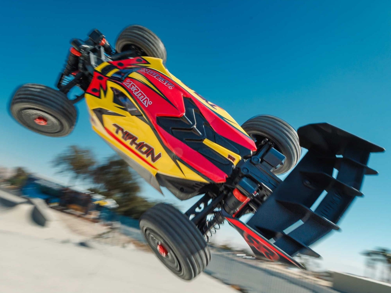For drivers who want a rugged, upgrade-ready platform with waterproof electronics, terrain-tuned suspension, and aerodynamic control, Buy ARRMA C-ARA4206V4T2 TYPHON MEGA 665 for 1/8 scale bashing and off-road control.