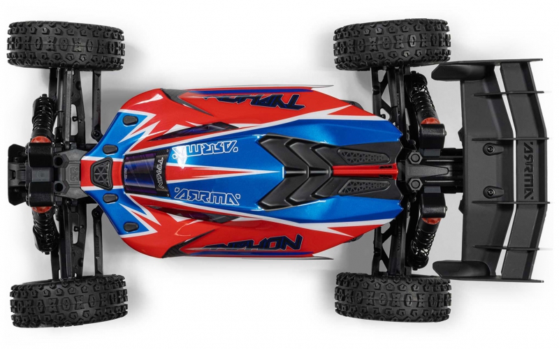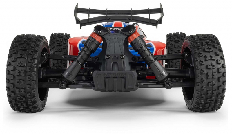 The ARRMA C-ARA4206V4T3 TYPHON MEGA 665 4X4 RTR with 14T brushed motor and 40A ESC is a red 1/8 scale racing buggy engineered for off-road enthusiasts who demand rugged performance, upgrade flexibility, and aggressive styling in one ready-to-run package. Designed to tackle dirt, gravel, and short grass with ease, this buggy combines a powerful brushed motor, durable 4WD drivetrain, and aerodynamic body with a low center of gravity. Whether you're launching off ramps or navigating uneven terrain, the ARRMA C-ARA4206V4T3 delivers a balanced mix of torque, traction, and terrain adaptability. With waterproof electronics, a ventilated chassis, and a clipless body retention system, this buggy is built to evolve with your driving skills and deliver consistent performance in all conditions.