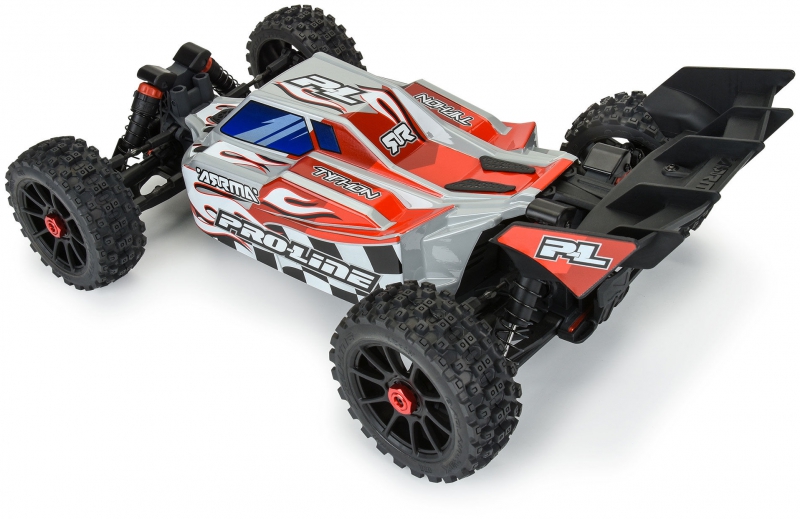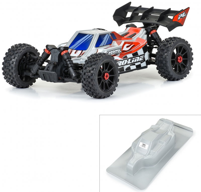 Pro-Line is bringing the latest high-performance race body to the ARRMA® Typhon™ 223S! Designed with the latest in CAD technology, the Axis features a super low-slung design with sharp lines throughout giving it an unmistakable look on the track or at your favorite bash spot. The Axis is a cab-forward design that provides enhanced steering response while the small side fins balance out the rear of the car with the ideal side-bite. The rear of the Axis body has the right amount of clearance for the motor and electronics and fits the chassis and bulkhead shape of your buggy perfectly.