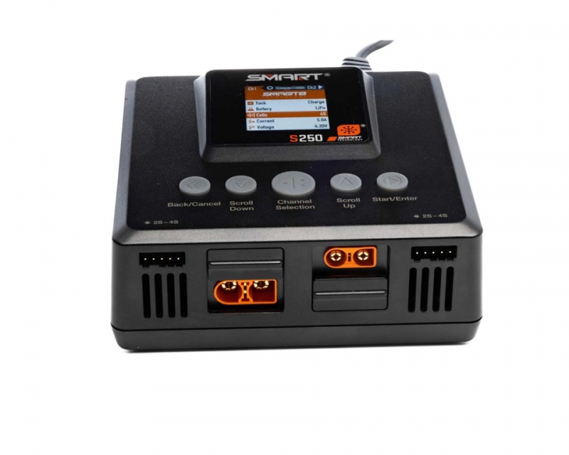 - Spektrum S250 Smart charger – dual 50W channels or 80W single-channel output for fast charging