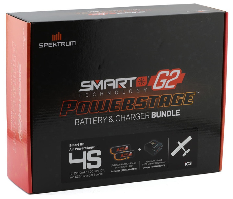 For pilots who want a reliable, feature-rich kit that simplifies battery management and enhances flight performance, the Spektrum O-SPMXPSA500 Smart Powerstage Air bundle with 2× G2 2200mAh 4S 50C LiPo batteries is an affordable Spektrum charger and battery kit with IC3 connectors and Smart balancing. Buy Spektrum O-SPMXPSA500 Smart bundle for RC aircraft with 4S LiPo and dual charger.