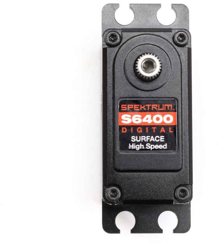 - Product Type: Spektrum P-SPMSS6400 S6400 HV servo with 266 oz-in torque, 0.06 sec speed, and 25T output spline, Spektrum P-SPMSS6400 low-profile digital servo for 1/10 scale buggies, trucks, crawlers, and RTR upgrades, Spektrum P-SPMSS6400 brushed HV surface servo with aluminum case and dual output shaft bearings, Spektrum P-SPMSS6400 with removable wire harness, 7075 anodized gear train, and 2-inch extension lead, High-speed waterproof servo for 1/10 vehicles with steel internal gears and aluminum mounting tabs