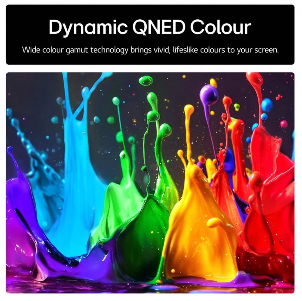 • Dynamic QNED Colour with certified 100% Colour Volume for vivid, lifelike visuals