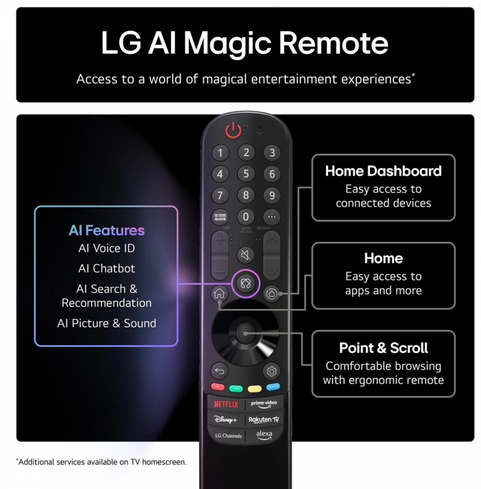 • Voice Control: AI Magic Remote with voice commands and motion control