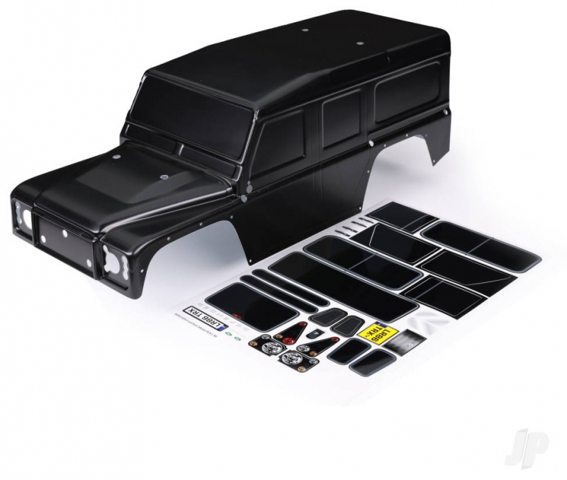 - Product Type: Traxxas TRX8011-BLK Land Rover Defender body black painted with decals, Buy Traxxas Defender body TRX8011-BLK for 324mm TRX-4 chassis, TRX8011-BLK pre-painted Defender body with decal sheet included, Black Defender body with pre-drilled holes and polycarbonate shell, Painted Land Rover Defender body with 1/10 scale realism and decal accents