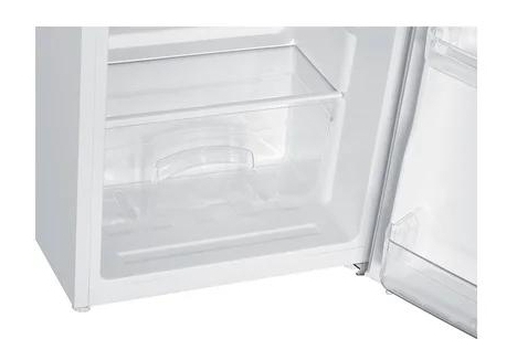 The Teknix TMH1148W compact top-mount fridge freezer provides 117L of net storage in a slim 48cm width design, perfect for kitchen corners or galley layouts. Featuring an 89L fridge compartment above a 28L freezer box, it delivers clear organisation with three glass shelves, a salad crisper, and a removable freezer shelf. The static cooling system uses manual defrost, while adjustable feet and a reversible door hinge ensure installation flexibility. Rated Class E for efficiency and quiet at 40dB, this unit is ideal for small homes, apartments, or utility rooms.