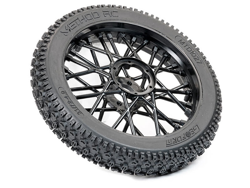 - Product Type: Method RC MTD1027 front tyre/rim for Losi Promoto-MX, Method Geoform pre-mounted front tire for Promoto-MX RC motorcycle, Method RC MTD1027 black wheel with closed-cell foam insert, Method RC Geoform tread tire for soft to intermediate terrain MTD1027, Method RC front wheel with enlarged bonding surface for Promoto-MX