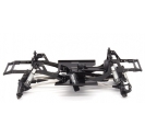 This is a builders kit: you will need to supply motor (brushed or brushless), ESC, steering servo, battery with appropriate connector, charger, wheels/tires, radio/receiver, and optionally shocks if not included.