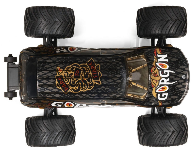 Like the legendary creature that turned heroes to stone, the ARRMA GORGON GROM 4X4 RTR Monster Truck strikes fear—or envy—in every driveway and dirt track it haunts. Forged for both newcomers and seasoned bashers, the GORGON GROM packs the raw power and untamed spirit of a true monster, all contained within a compact and powerful frame.