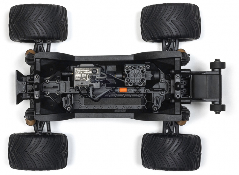 Underneath, the reinforced chassis and high-travel suspension is built to withstand every petrifying impact and keep going. This truck isn't just tough. It's smart. The deep tub chassis keeps out dirt and debris so you can bash harder without clogging the works. The monster truck stance and elevated centre of gravity allow it to conquer all obstacles in its way. Chaos, indoors or out, is where the GORGON GROM rules.
