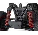 The QUAKE GROM's suspension is tuned to leap, land, and keep rolling. High-travel shocks soak up jumps and bumps. The deep tub chassis keep out rocks and debris, so you bash harder without worrying about what's in your path. A high centre of gravity gives the QUAKE GROM that telltale monster truck stance, letting it clear gravel and dirt piles with ease. Got a driveway, a dirt patch, or an empty stretch of garage? The QUAKE GROM handles them all, and its size means you can have fun indoors too—when the weather turns or you just want to keep bashing.
