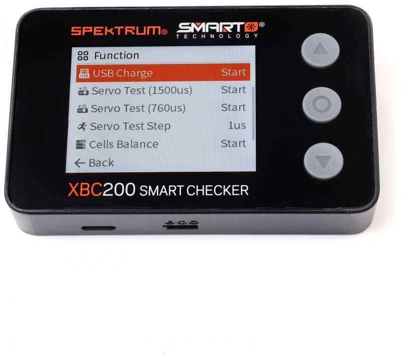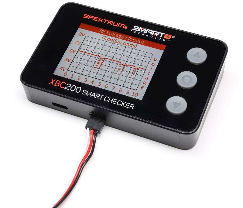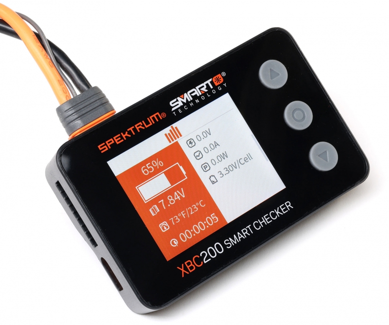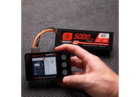 The Spektrum Smart Battery Checker and Servo Tester is a must have tool for any pilot or driver's toolbox. This battery checker and servo tester has even more functionality than previous generations. More than a battery checker, it features a built-in cell balancer, PWM checking, a voltage checker for receivers that graphs voltage over time, integrated servo tester and driver, connections for IC2, IC3, and IC5, and Spektrum Smart battery connectivity.