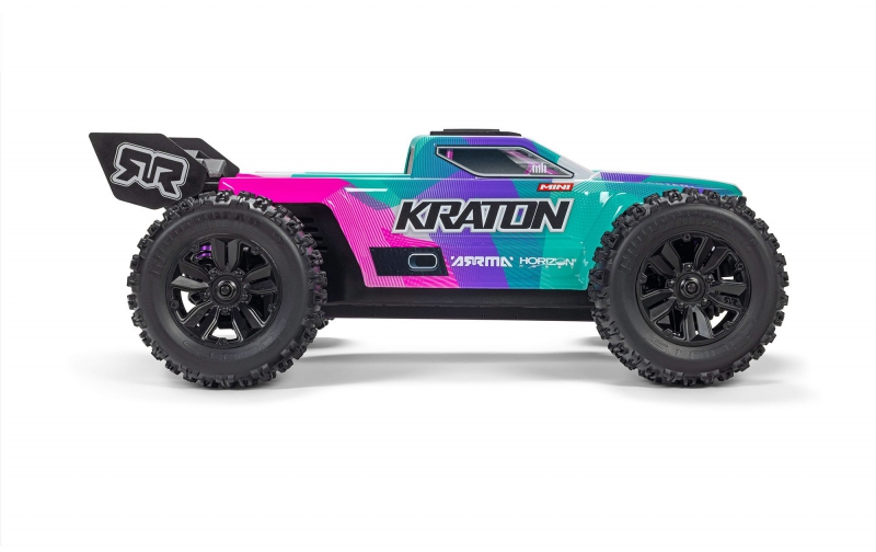 Set some ramps. Carve new lines. Claim your territory. The ARRMA MINI KRATON 3S BLX 4X4 gives you everything you need to create full scale excitement from a half scale beast. Bring your 3S LiPo and discover how much trouble a compact speed monster can stir up.