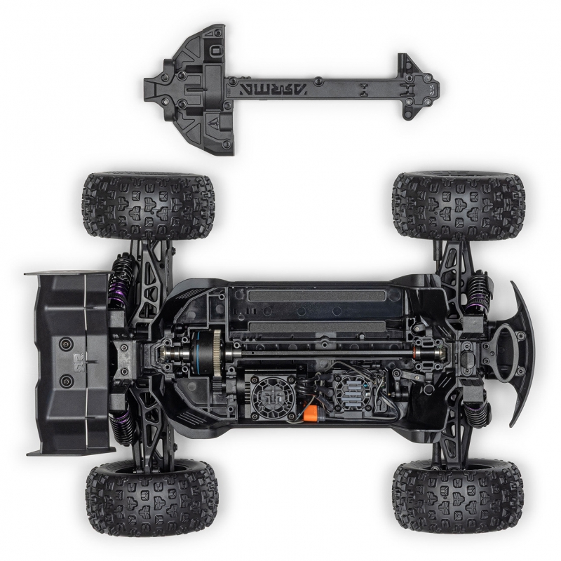 Its compact footprint hides a full arsenal of ARRMA strength. The mini chassis uses reinforced components and heavy-duty bumpers for the kind of durability that lets you go wild without thinking twice. The aggressive body comes in bold factory paint with a quick release clipless system for fast pit stops and even faster bragging rights.
