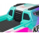 Then comes the power story that flips the script. The MINI KRATON 3S BLX is the first ARRMA vehicle equipped with PowerGuard. Right out of the box on 3S it runs at the sweet spot of 30+mph and 20mins plus runtime, great for everyone, perfect for dialling in your skills while still feeling the pulse of real brushless authority. If that's too much, flick a switch on the transmitter and open up 30mins plus of play time. When your confidence rises and your grin widens it is time for the PowerKey. Plug it in and unleash full 50+mph 3S muscle that turns this little powerhouse into pure KRATON Chaos.