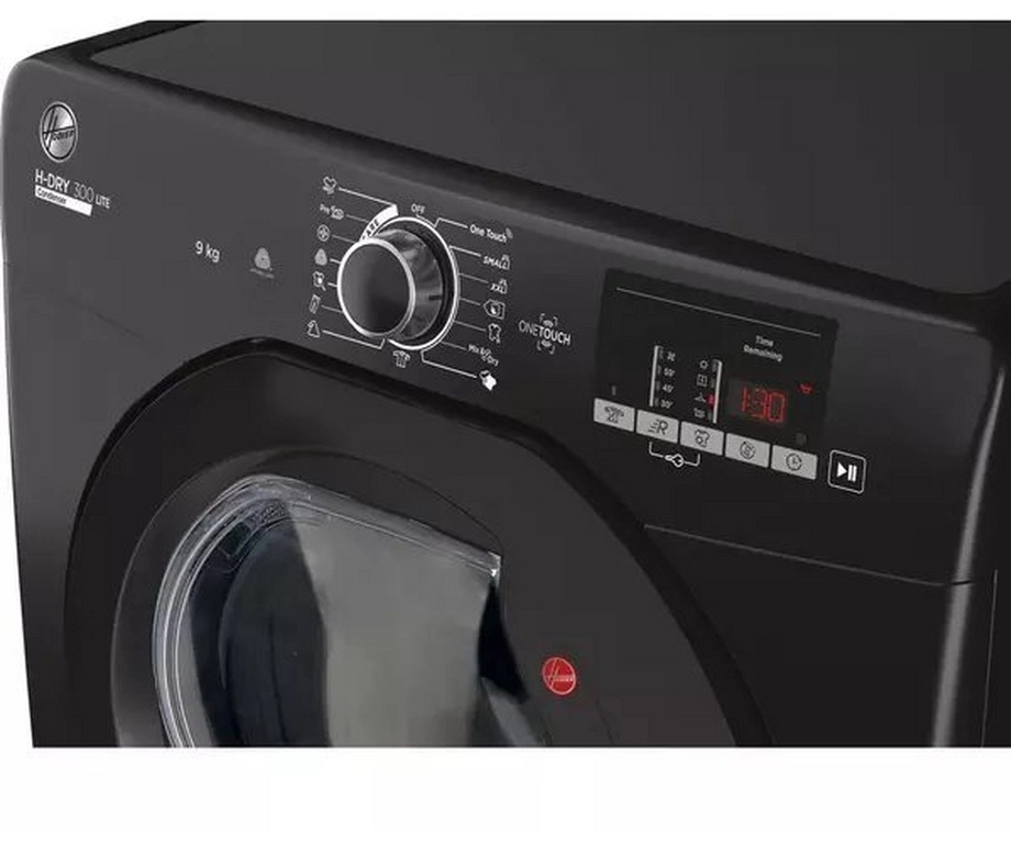 The 9kg capacity of the Hoover HLEC9DGB-80 allows users to dry larger loads in a single cycle, which is particularly beneficial for busy families. This feature not only saves time but also reduces the number of cycles needed, making laundry management more efficient. The spacious drum is designed to accommodate bulky items such as bedding and towels, ensuring that everything dries evenly and thoroughly.
