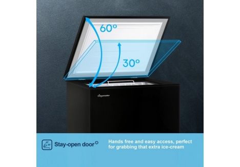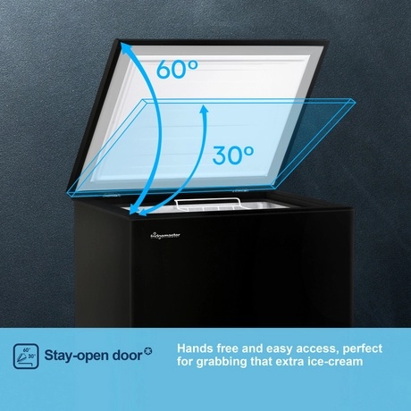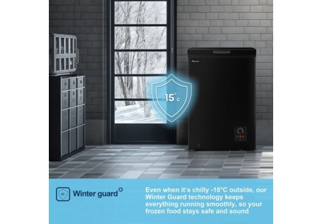 The Fridgemaster best black chest freezer offers a significant advantage with its Winter Guard technology. This feature ensures that the freezer operates efficiently even in cold environments, making it perfect for use in garages, sheds, or other outbuildings where temperatures can drop significantly. The Fridgemaster MCF96EB winter guard ensures that your food remains frozen, regardless of the external conditions.