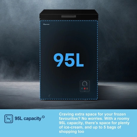 The robust design and reliable performance of the Fridgemaster MCF96EB make it a practical choice for anyone needing extra freezer space outside of the main house. Whether you're storing bulk purchases, seasonal produce, or extra meals, this freezer provides a dependable solution. The Fridgemaster black chest freezer for sale is built to withstand the demands of various environments, ensuring your food stays frozen and fresh.