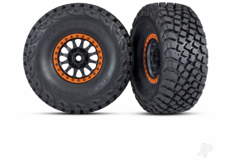Traxxas Tyres & wheels, assembled, glued (Method Race Wheels, black with orange beadlock, BFGoodrich Baja KR3 tyres) (2) TRX8474-ORNG