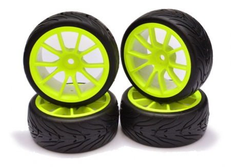 Fastrax 1/10 Street/ Tread Tyre 10 Spoke Neon Green Wheels FAST0072G