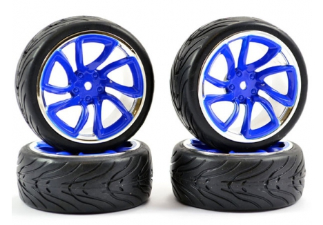 FASTRAX 1/10 STREET/TREAD TYRE TRI-5 BLUE/CHROME WHEEL FAST0088BLC