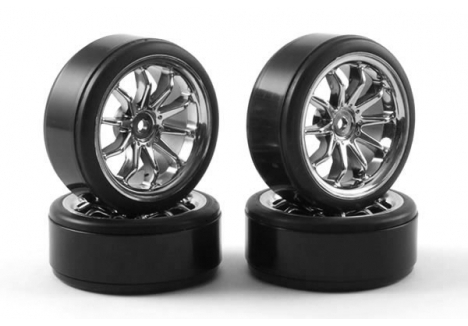 Fastrax 10-Spoke Drift Wheel & V2 Tyre Set (4) - Chrome FAST0092C