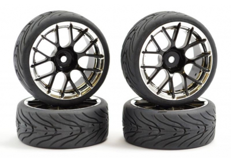 FASTRAX 1/10 (4) DRIFT D1 TYRE w/9MM 6-SPOKE WHEEL- BK CHROME FAST1350BC-D19
