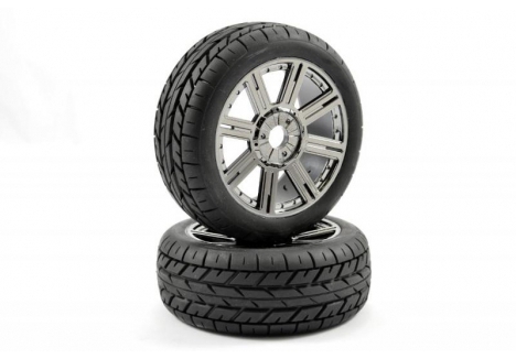 Traxxas Wheels & Tyres, assembled, glued (12-spoke Black Chrome wheels, slick tyres) (2) TRX7573A