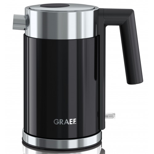 - Double-walled electric kettle: Inner body made of stainless steel, outer body made of acryl, black
