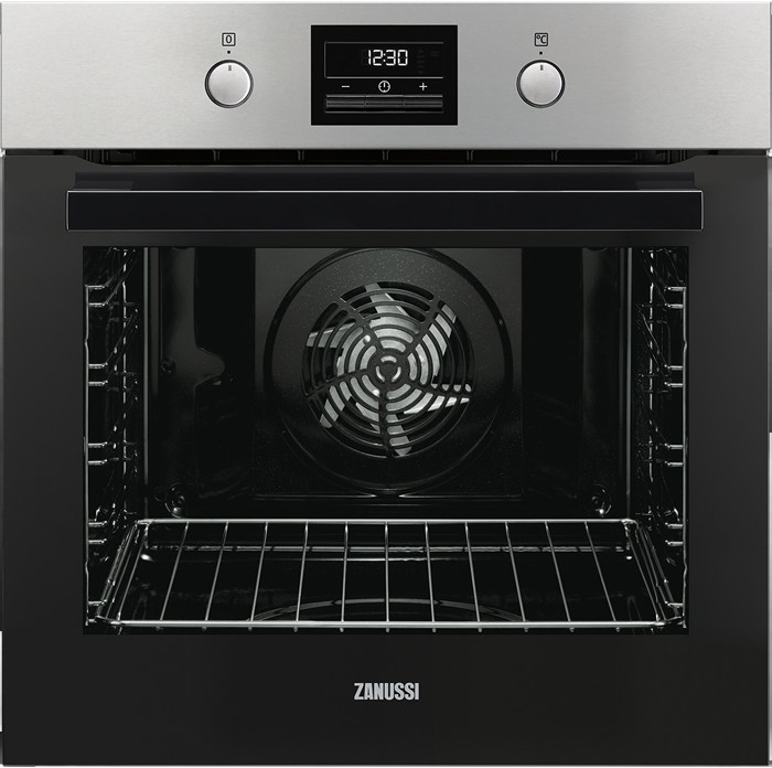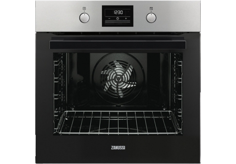 Everything in one go? Easy. This XL fan oven saves you time and money. Food cooks quicker with less heat and it has a fan at the back to circulate hot air and stop flavours fighting — this means each dish comes out tasting the way it should. Easy Tip? Pots, pans and trays with low sides work best.