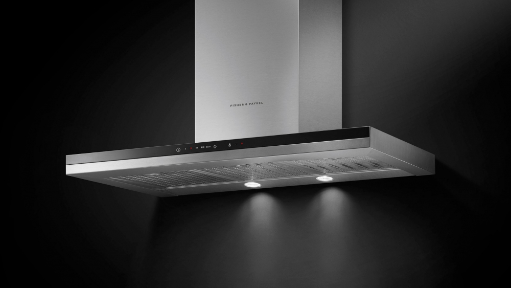 This Fisher & Paykel 120cm wall chimney cooker hood’s large size is ideal for spacious cooking areas.